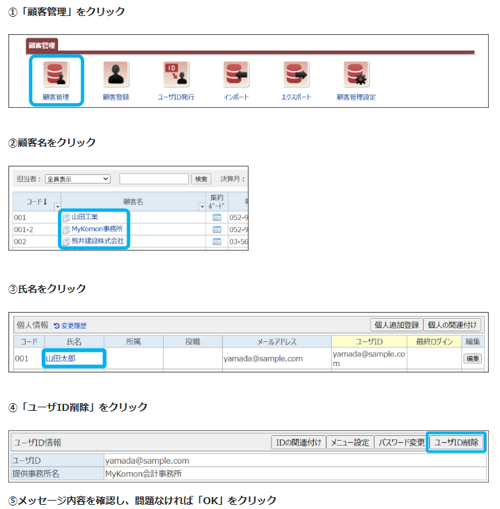 関与切れになった顧客がいます。IDの削除方法を教えてください。