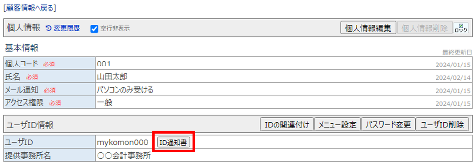 なお、一度でも顧客IDでログインしている場合は「ID通知書」が表示されません。