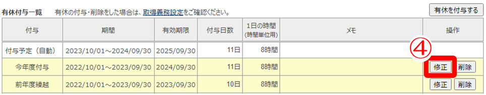 既に設定した有休の期間や付与日数を修正することはできますか?