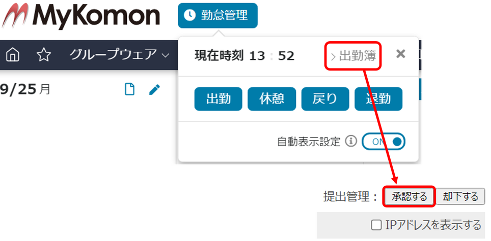 2)出勤簿の承認方法