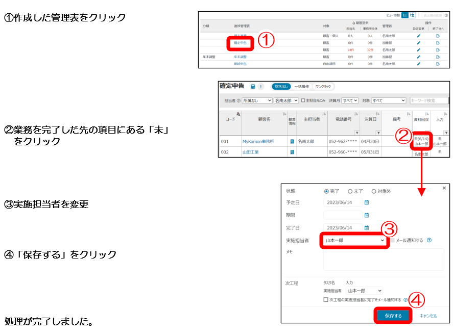 実施担当者を変更したいです。