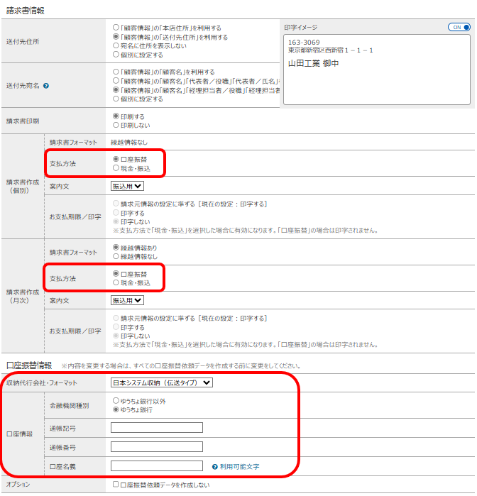 作成した請求書を振替依頼データに含みたいのですがどうしたらいいですか?