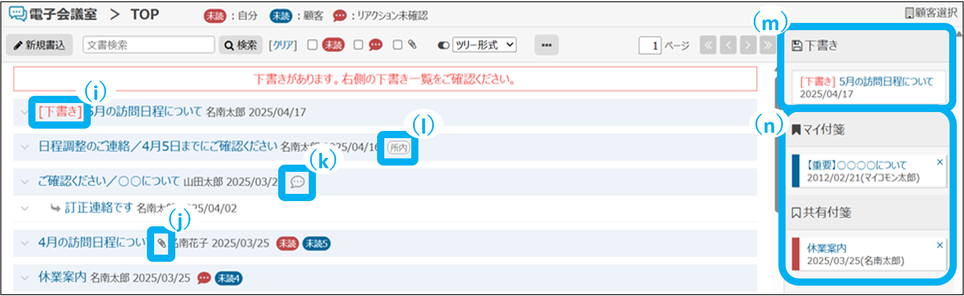電子会議室に参加している職員、顧客の担当者を表示します。