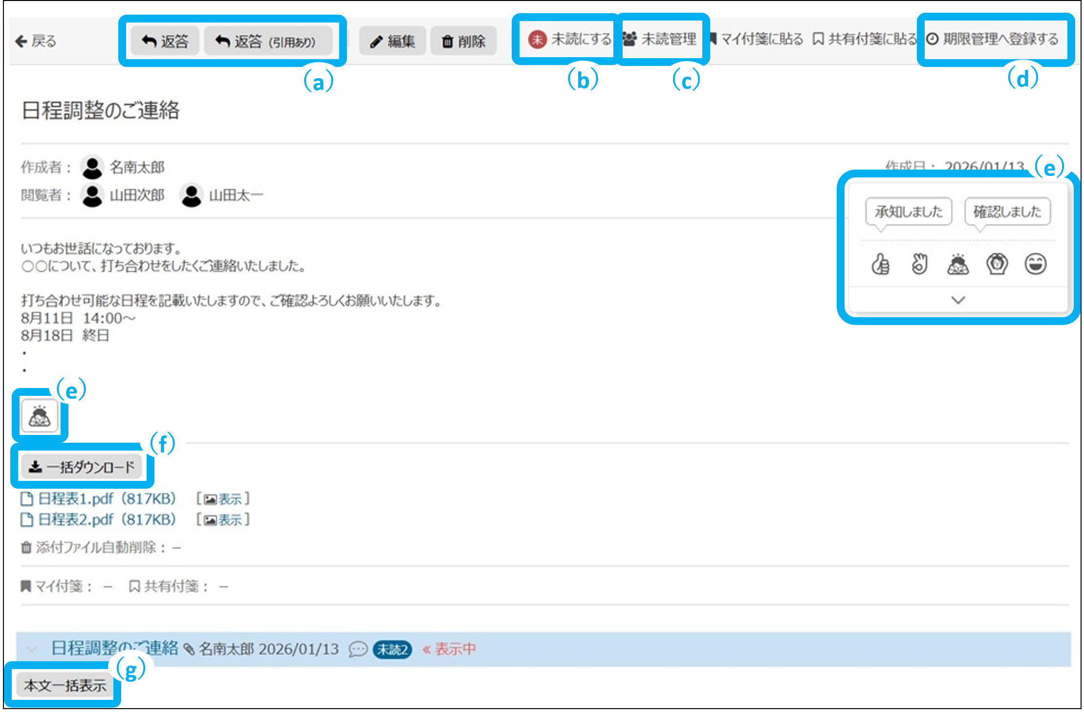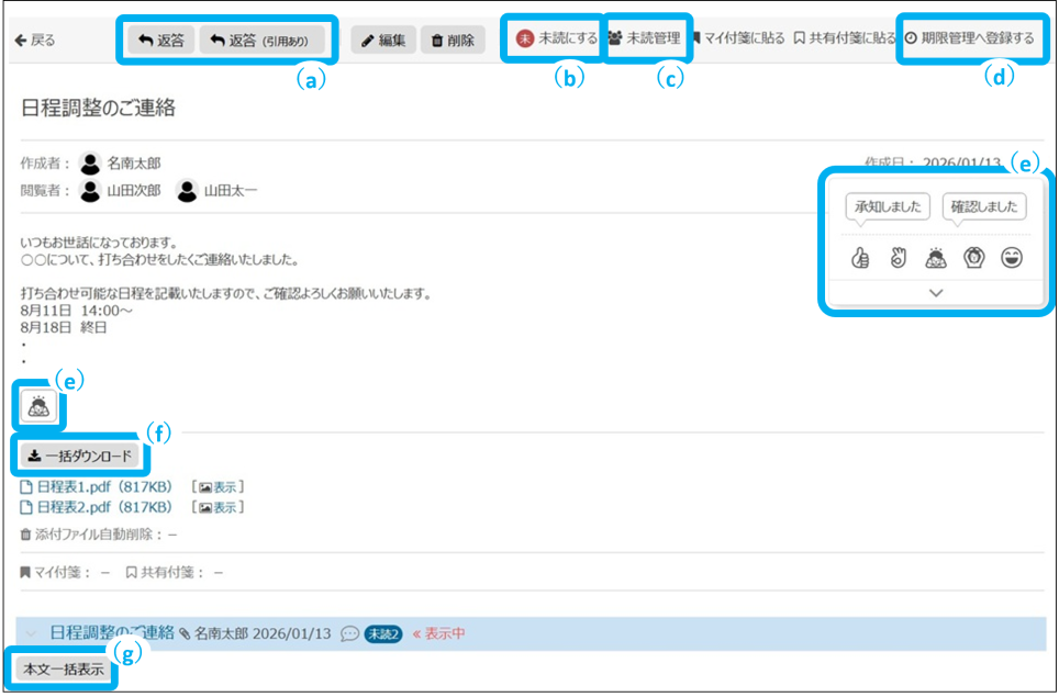 文書にカーソルを合わせると、リアクションを付けることができます。