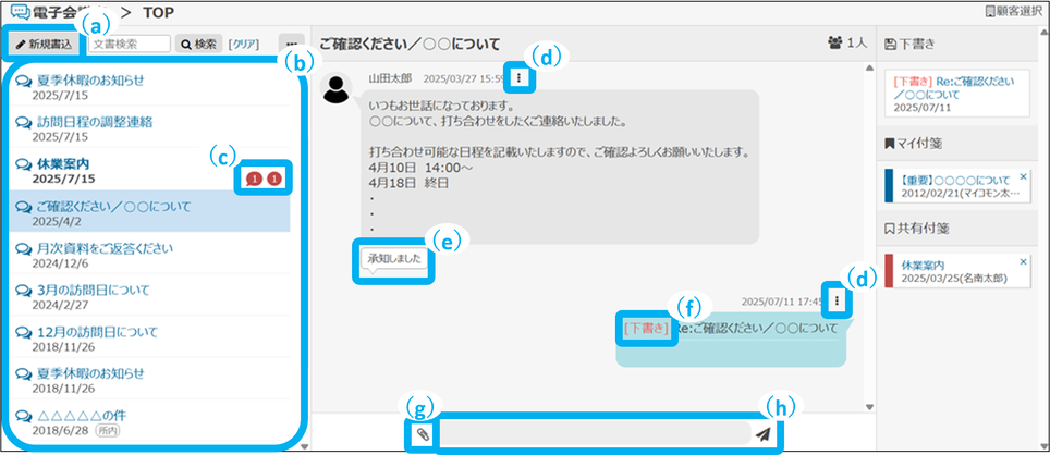また、(h)にファイルをドラッグ&ドロップして送信することもできます。