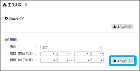 ③更新する商品・期間を指定し、「エクスポート」をクリック