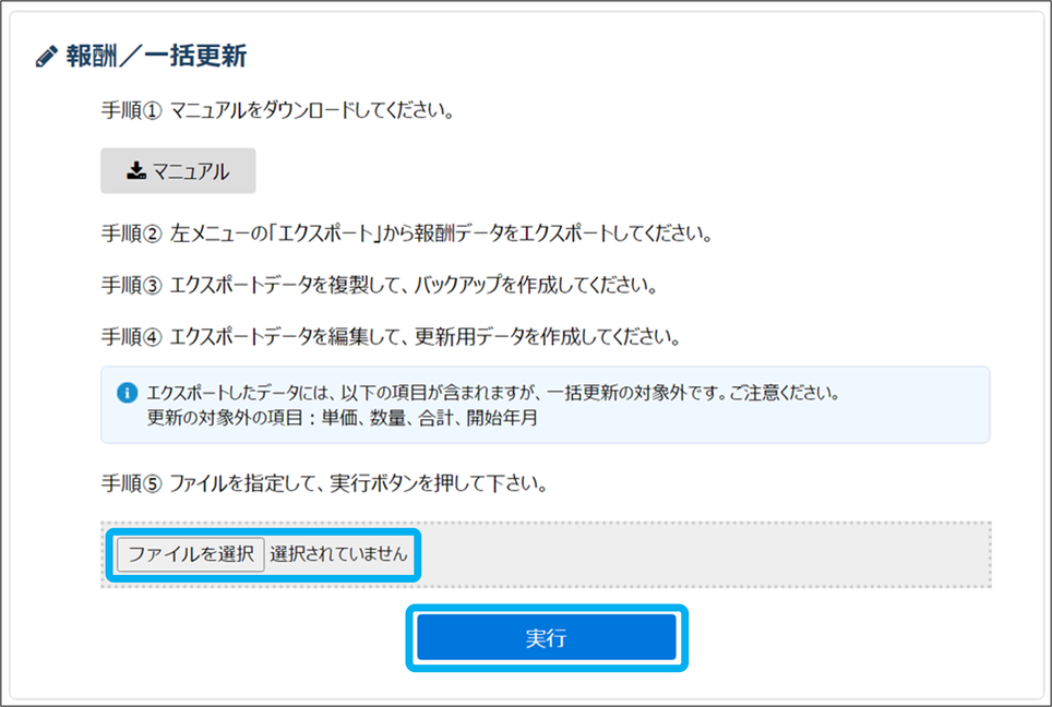 データの作成方法は、報酬管理インポートマニュアルをご覧ください。