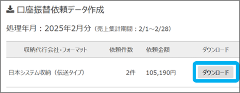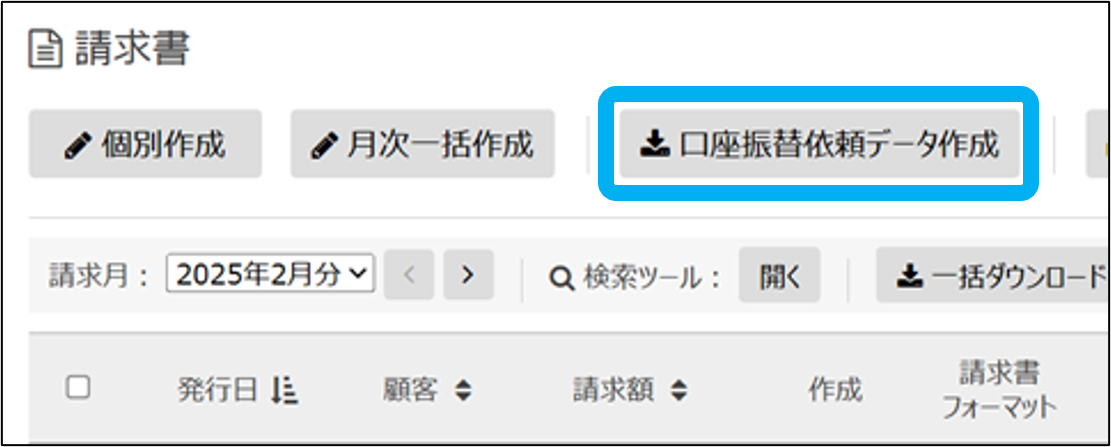 ※請求書を作成すると、口座振替依頼データをダウンロードできます。