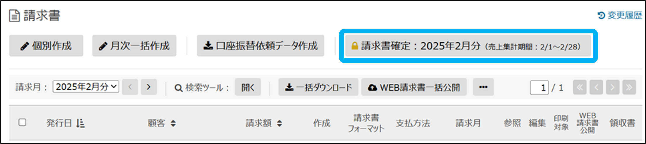 確定した請求月は、売上や請求書の編集・削除ができなくなります。