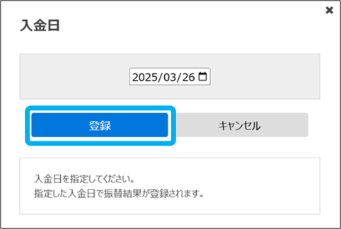 ④入金日を指定し、「登録」をクリック