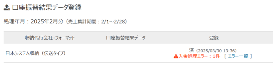 口座振替結果データの登録が完了しました。