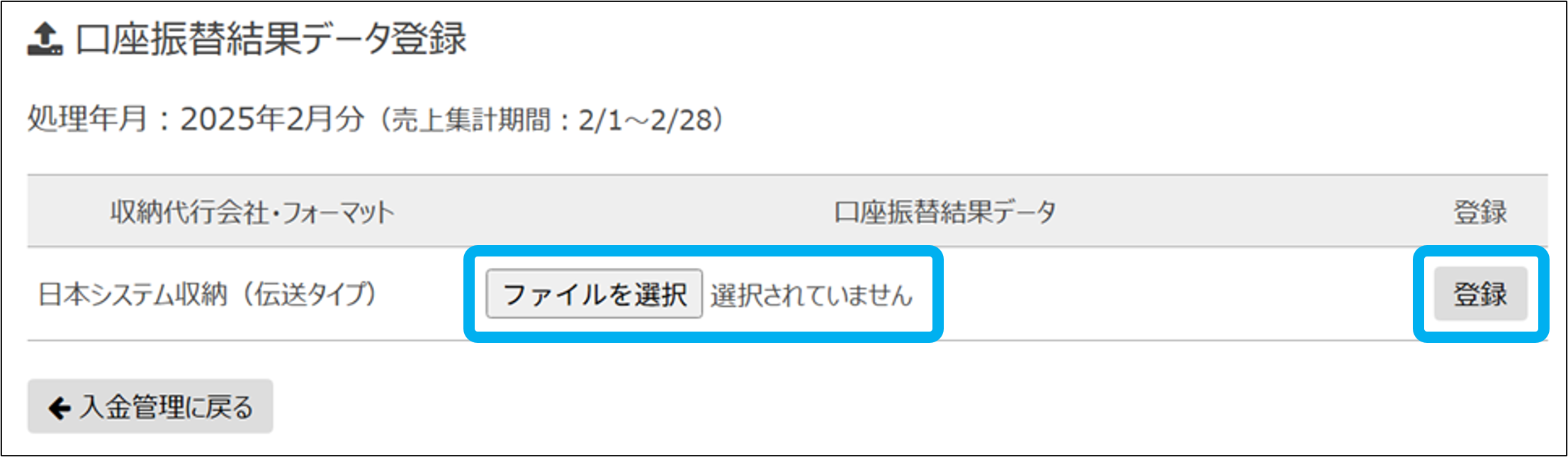 口座振替結果データの登録