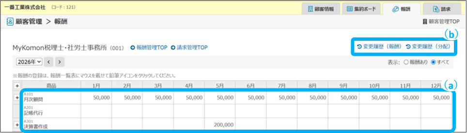報酬の新規登録、修正、契約変更ができます。