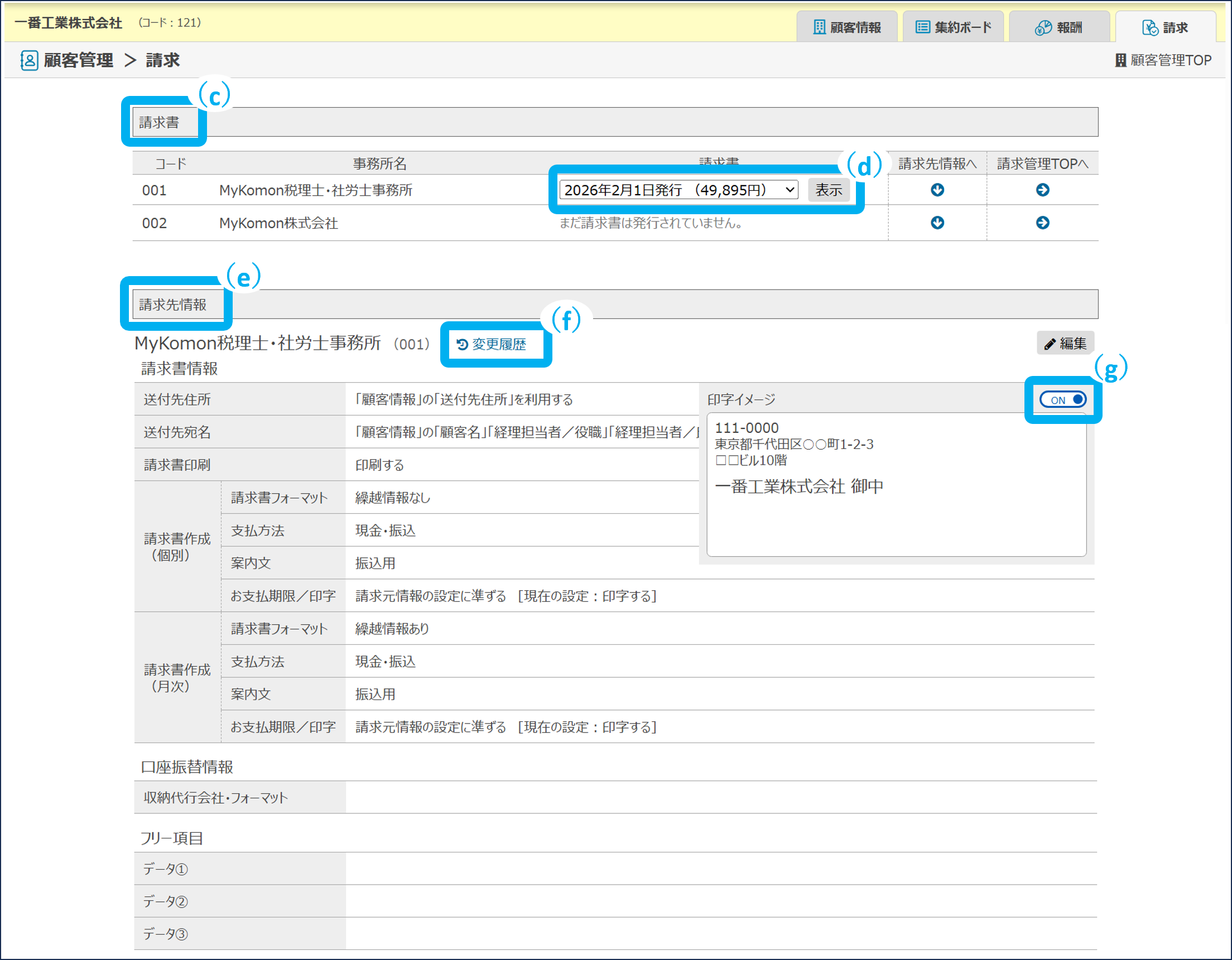 請求管理に関わる顧客管理の画面紹介です。