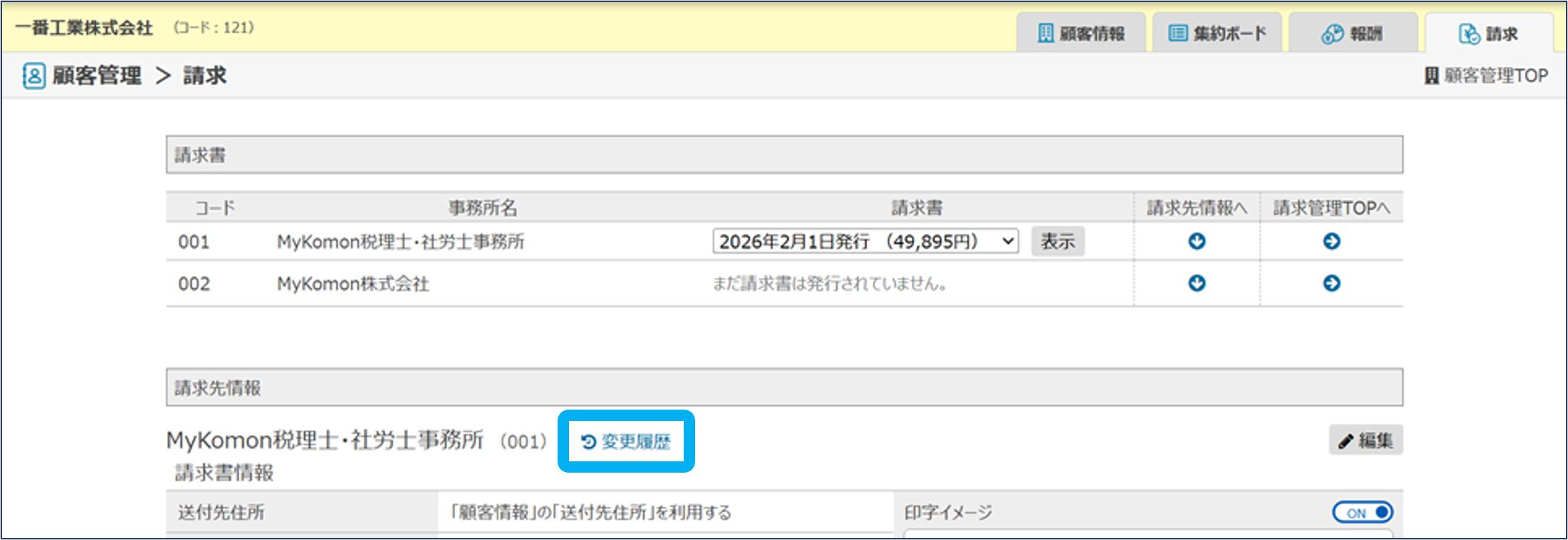 請求先情報