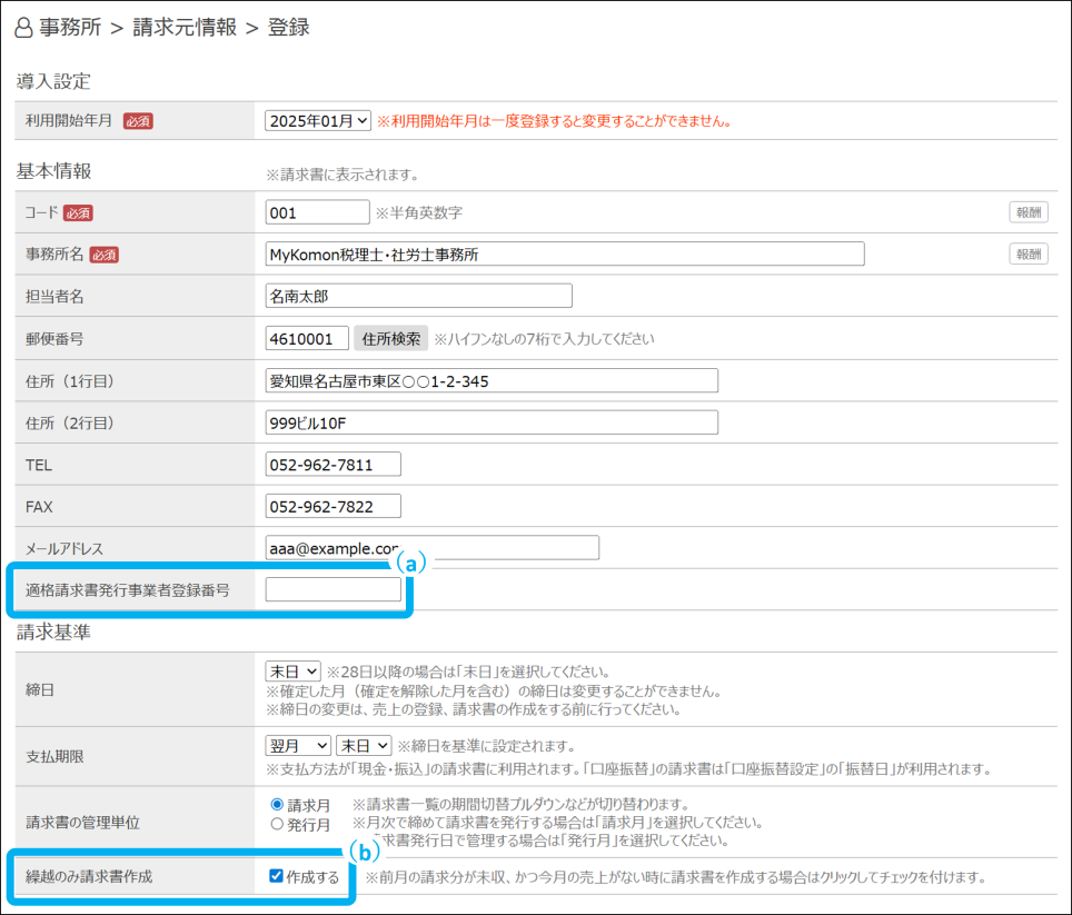 請求元情報を登録します。