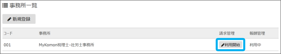 ③請求管理を利用する事務所の「利用開始」をクリック