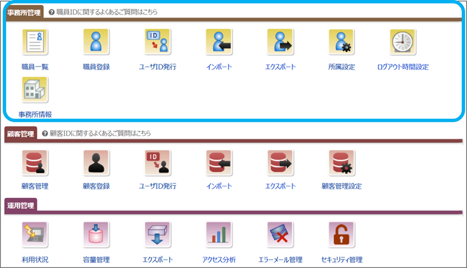 ※これからご案内する設定は、所長・IT担当者にて行うことができます。