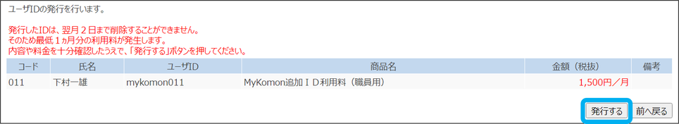 ④内容を確認し、「発行する」をクリック