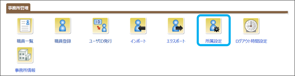 ①「所属設定」をクリック