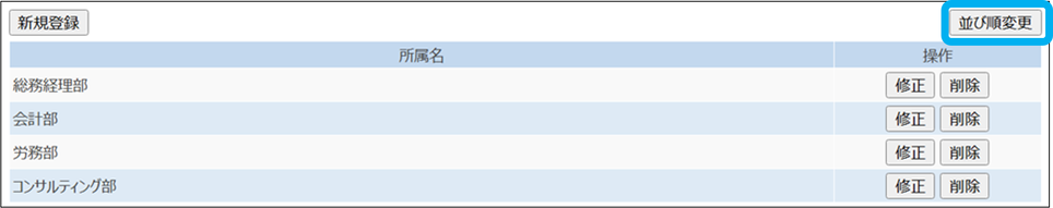 所属の並び替え