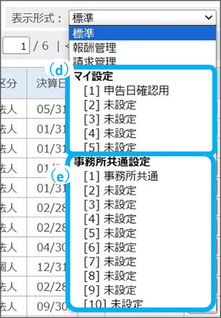 事務所内すべての職員が選択できる表示形式です。最大10個まで登録できます。