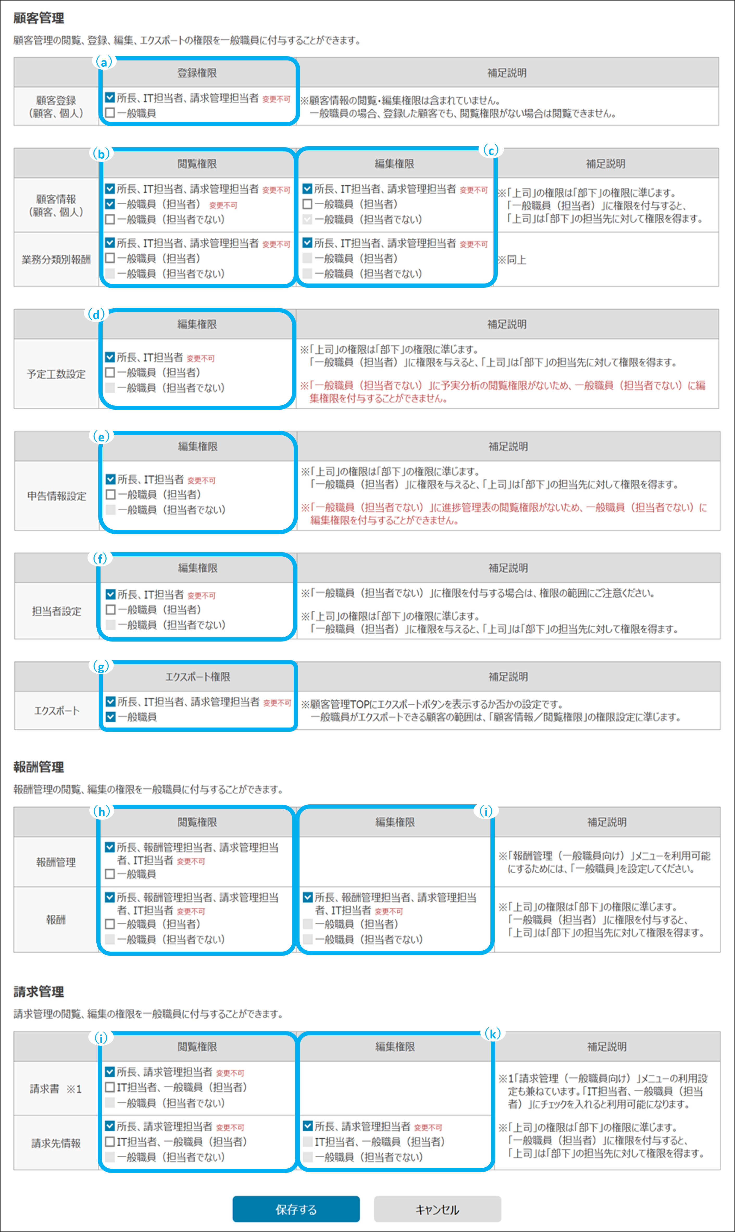 (c) 編集権限(顧客情報、業務分類別報酬設定)