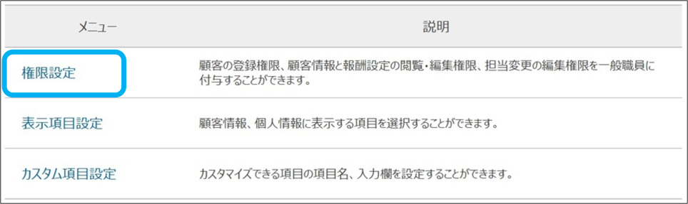 顧客管理TOPの「エクスポート」を表示するか設定できます。