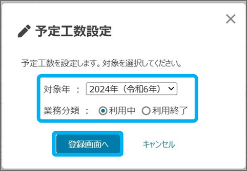 ⑤業務分類ごとの予定工数を入力し、「保存する」をクリック