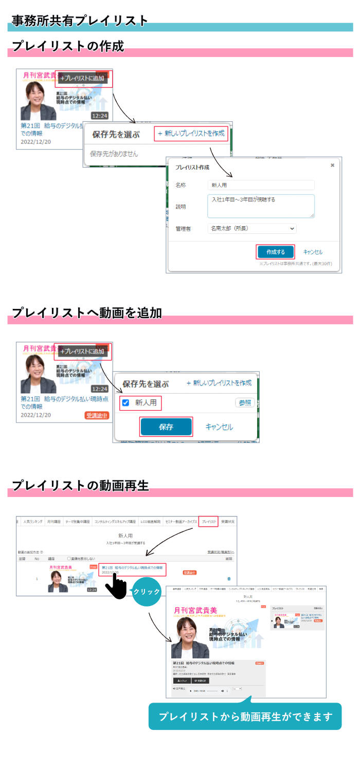 事務所共有プレイリスト内の動画を音声再生していただくと、講座終了後に次の講座を自動再生できるようになりました。