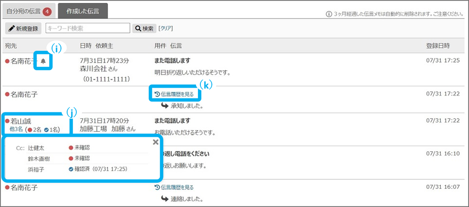 「他〇名」をクリックすると、すべての宛先と確認状況が表示されます。