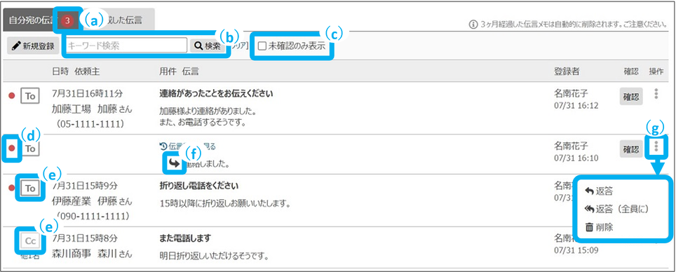 未確認の伝言メモがある場合、ホームに件数が表示されます。