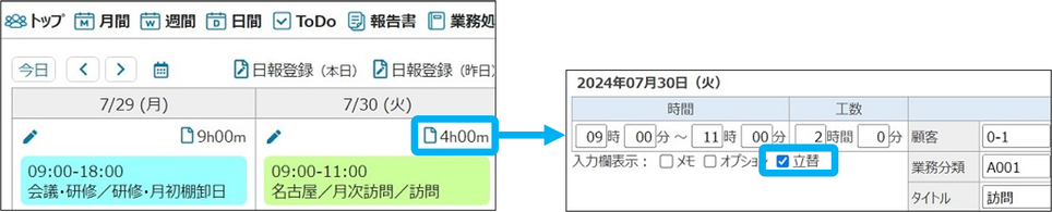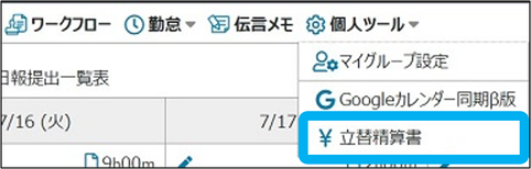 業務・日報・業務報告書の各登録画面から、立替を登録できます。