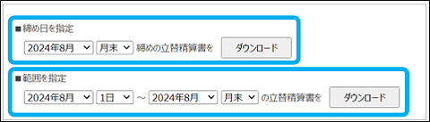 ②期間を選択し、「ダウンロード」をクリック