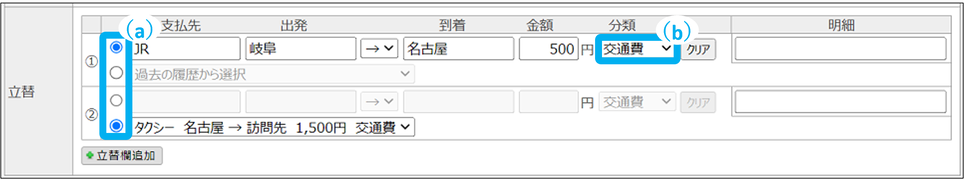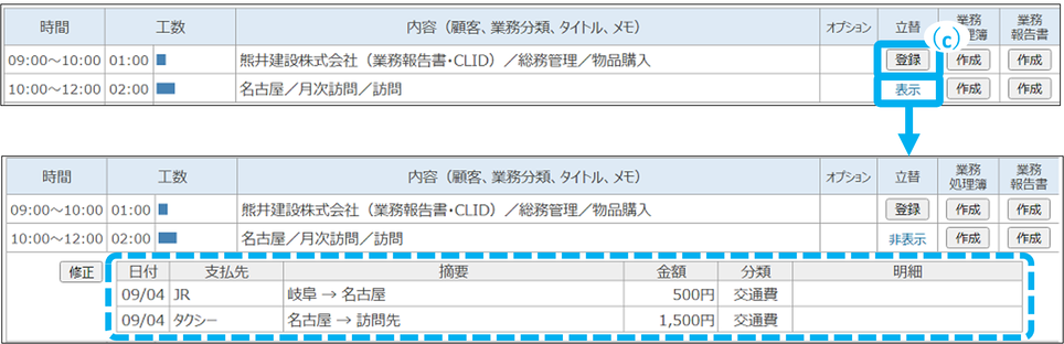 日報参照画面からも立替を登録できます。
