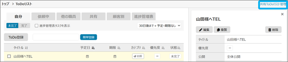共有ToDoの登録・閲覧の詳細は、共有ToDoの登録 をご覧ください。