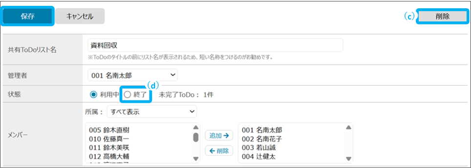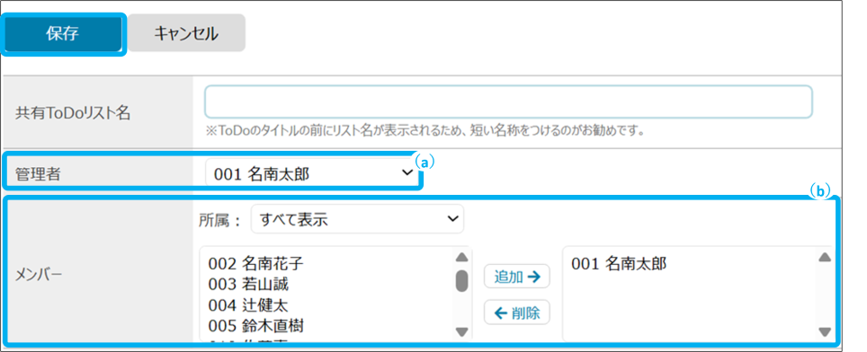ToDoリストを共有する職員を追加・削除できます。