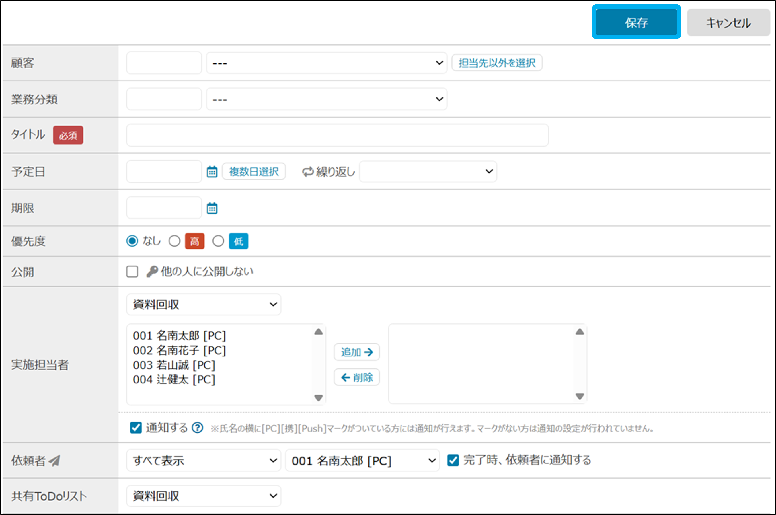 ※ToDoリスト画面からの実施担当者の変更方法は、実施担当者の変更をご覧ください。