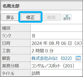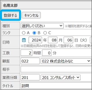 種別を選択できます。テンプレートが登録されている場合は、業務内容に挿入されます。