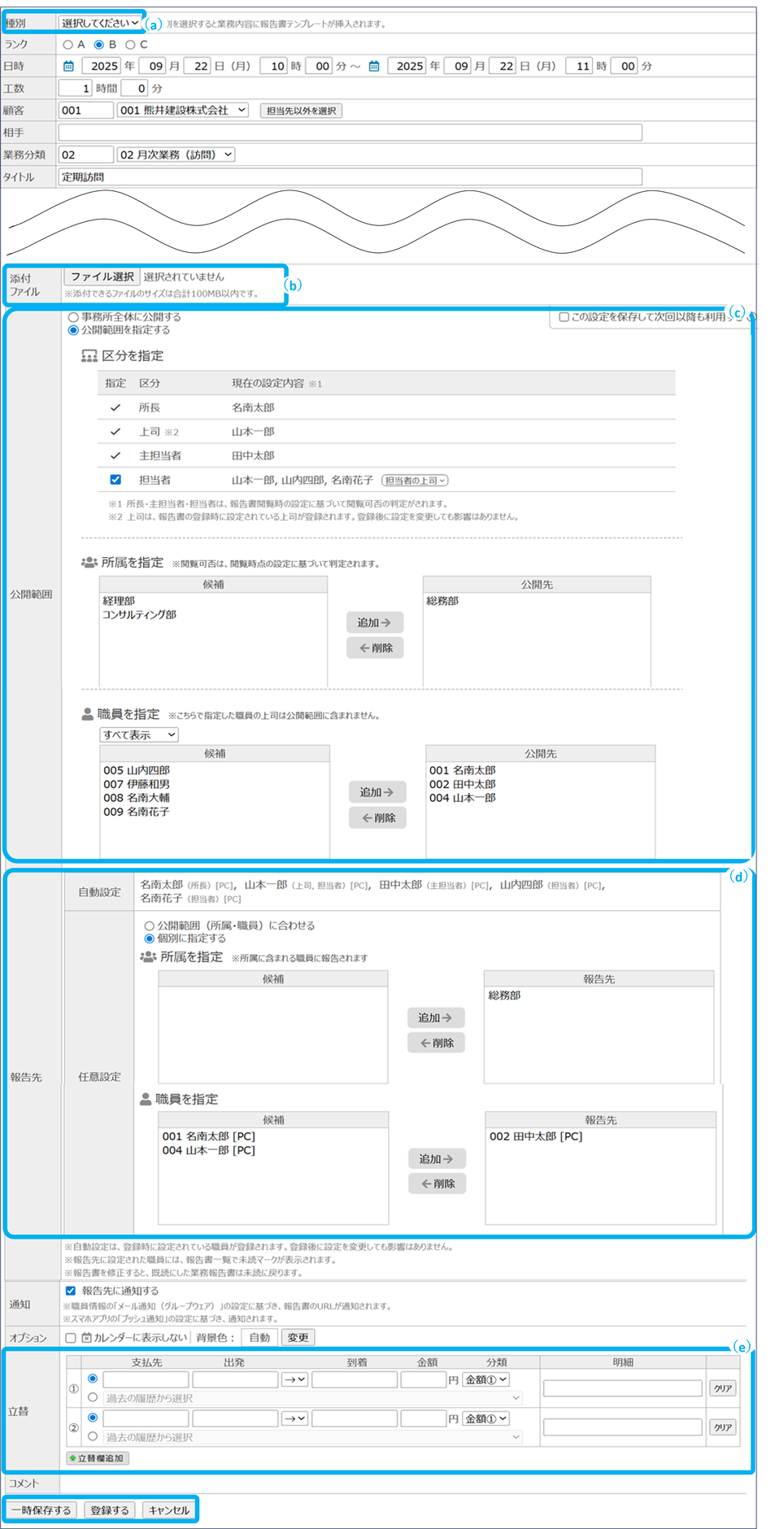 ※一時保存した業務報告書は、他の職員も閲覧できます。
