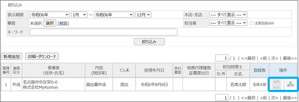 ①「業務処理簿」をクリックし、「新規追加」をクリック