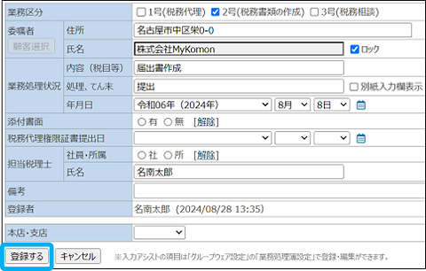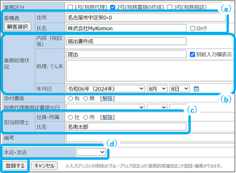 ※入力アシスト候補、および本店・支店マスタは、グループウェア設定から設定できます。