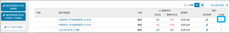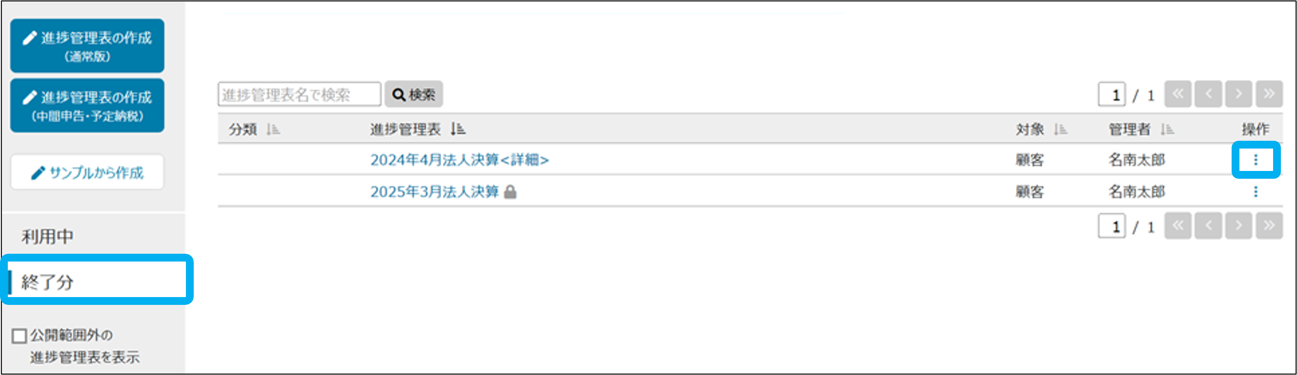※作成者・管理者、および所長・IT担当者のみ「終了分」へ移動できます。