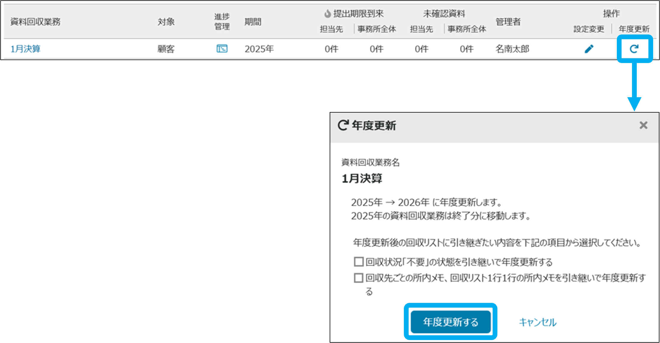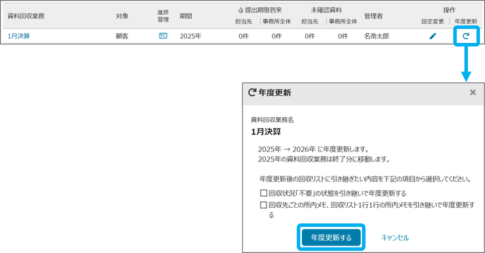 資料回収業務の年度更新ができます。