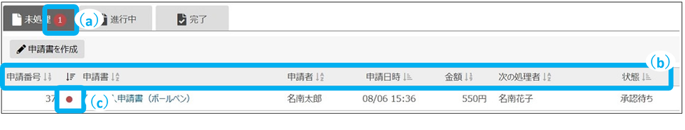 未処理・未確認の申請書がある場合、ホームに件数が表示されます。