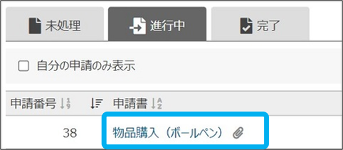 ※申請者から2つ以上先のステップにある申請書には、「取り下げ」が表示されません。