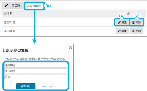 ※分類を削除すると、該当の分類を選択していた進捗管理表は「分類なし」になります。