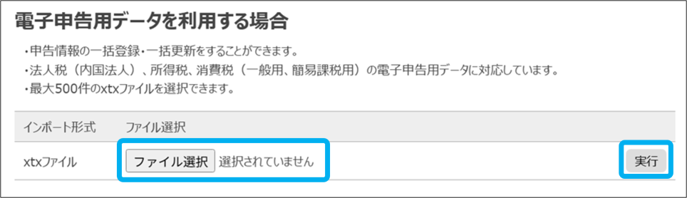電子申告用データ(xtxファイル)を用意できる場合、一括処理を利用できます。