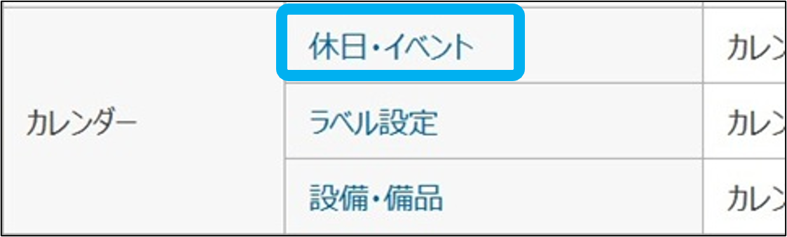 ①「休日・イベント」をクリック