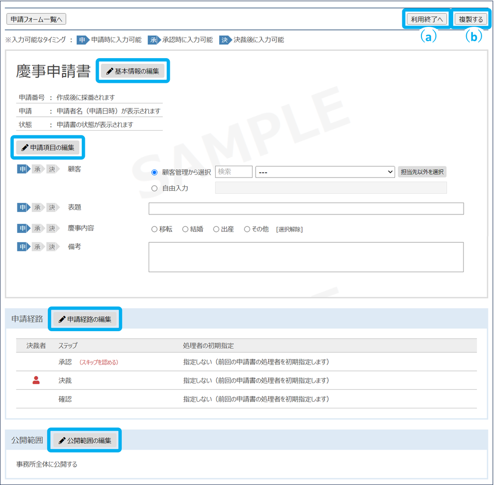 申請フォームを複製できます。